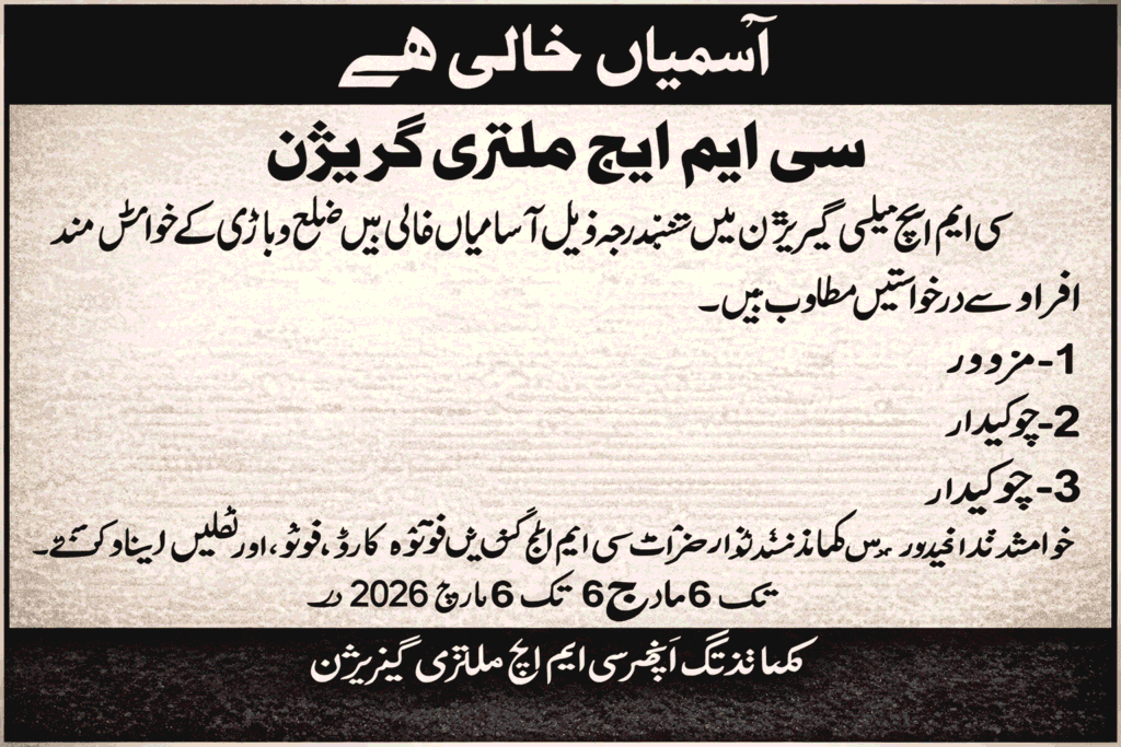 Should the CMH Mailsi Garrison Jobs 2026 catch your eye, plenty of positions wait to be filled. Education level – whether it stops at primary school or stretches through bachelor studies – shapes eligibility. Fresh applicants can find spots, though certain jobs lean toward seasoned hands. Official criteria decide every detail.